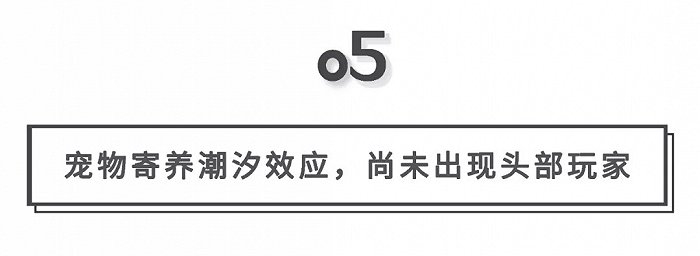 在潮汐效应下,不管是宠物店寄养、家庭式寄养,还是上门喂养、宠物酒店,都是以小规模门店为主,尚未出现具备规模的头部玩家。