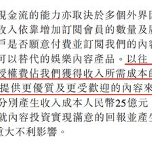 据网易云音乐提交的IPO招股书,网易云音乐近三年亏损50亿,音乐授权占去成本大部分。此外,部分音乐授权协议规定网易云支付最低保证金,而这部分保证金可能会带来业务、财务状况及经营业绩方面的不利影响,并因其固定成本性质可能限制网易云在计划或面对业务变化和市场变化时的经营灵活性。
