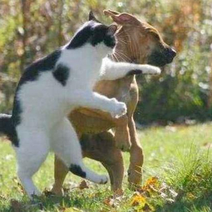 现在在我们的日常生活中,经常能看到猫欺负狗,狗气的咬牙切齿就是拿猫没办法,那真的是没办法。据说猫的反应速度是60毫秒,是狗的1倍多,是人类的3-4倍。就这1倍多的反应速度,就够狗狗们挨揍了。再说猫主子们也得看心情,如果心情不咋的,按它的反应速度,你想撸它?想也别想,铲屎官们根本没有可能撸到它的毛发。所以如果猫突然偷袭打狗一巴掌,打完就跑,来回多次,就这样狗也没办法。猫狗打架,狗总是被欺负的那个。