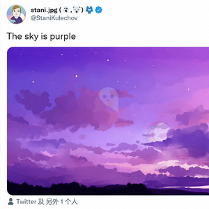 8月19日,Bluesky实体宣布成立后不久,Aave创始人StaniKulechov在推特发布了一张紫色天空的图片,并在图中标记了推特公司和Jack,并说:「天空是紫色的。」(注:Aave loge颜色为紫色,Bluesky logo颜色为蓝色)