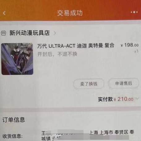 家住奉贤的市民王先生是奥特曼的粉丝。今年3月,他在一家网店花了210元购买了一款奥特曼玩具,店主承诺是正品。收货后,王先生觉得质量真还不错,于是今年6月又以605元的价格购买了另一款奥特曼玩具。