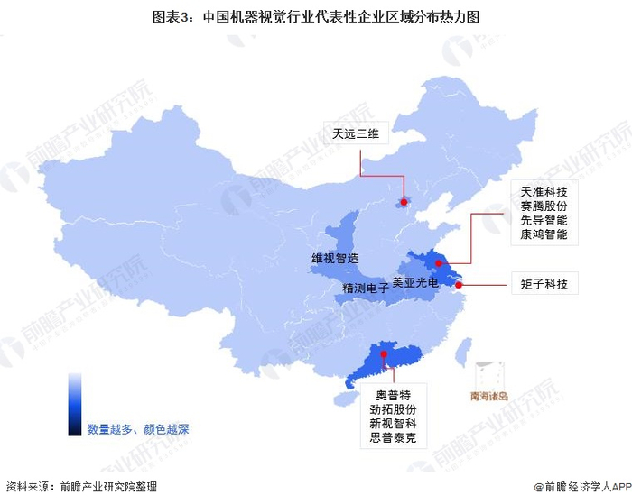 从机器视觉行业代表性企业的所属地分布来看,广东省和江苏省是机器视觉代表性企业的集中地。