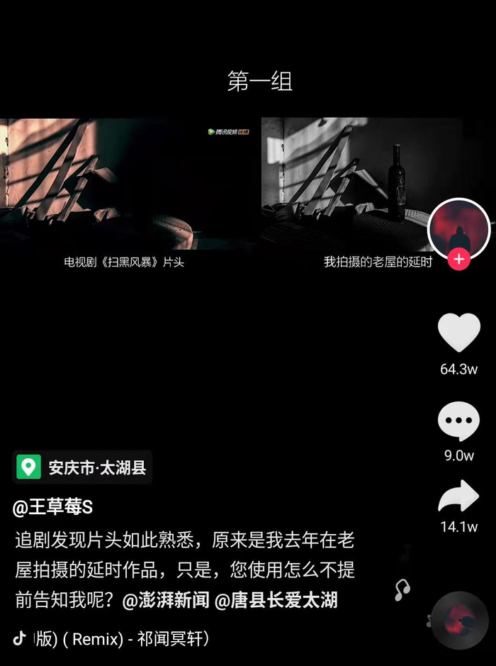 事已至此,破案逻辑链形成了闭环。有人剽窃了独立摄影师@王草莓S 的作品谋取利益,然后这些素材又辗转用到了《扫黑风暴》的片头。
