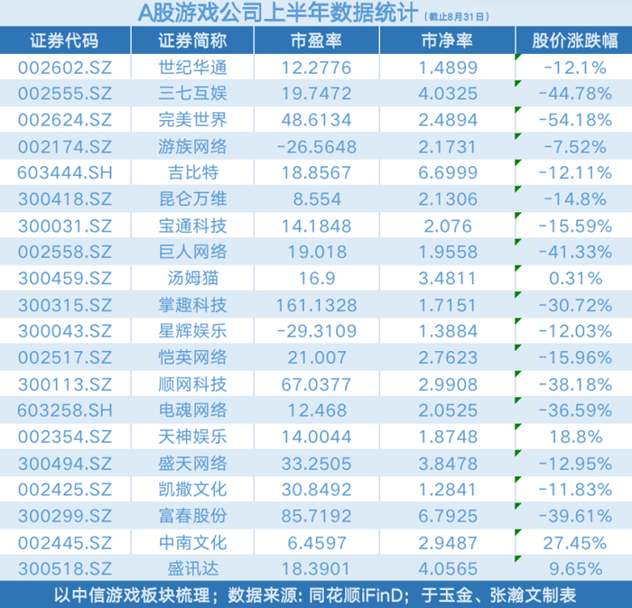 《华夏时报》记者依据中信证券游戏板块,采纳同花顺iFinD数据,对A股20家游戏公司进行了梳理。截至8月底,20家游戏公司中仅有4家股价呈涨势,大多数公司的股价表现都不太好看。随着8月“中报季”结束,来看看各家公司交出了怎样的答卷?