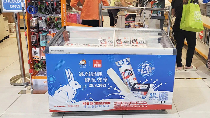 几天前,首批2500箱大白兔雪糕漂洋过海,正式亮相新加坡。当地消费者在线下63家ntuc连锁超市以及线上shopee和lazada网站都能买到正宗的大白兔雪糕。浓郁的奶香和独特的咀嚼口感使许多消费者品尝后赞不绝口,纷纷通过网上社交平台为大白兔雪糕点赞。