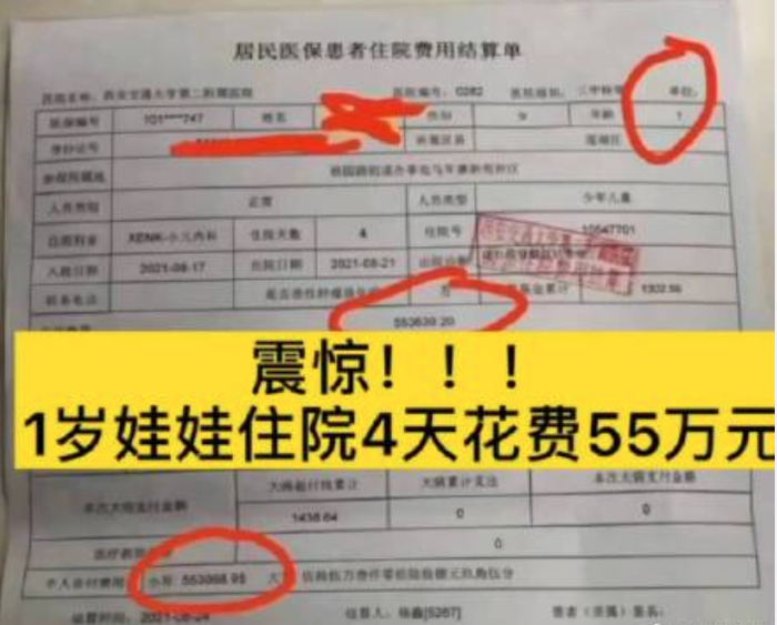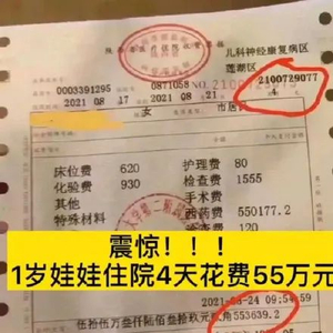 “震惊!1岁娃娃住院4天花费55万?”家长却说:别炒作了……