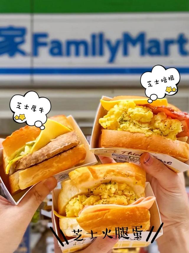要说全家有哪些神仙三明治,厚烧三明治系列必须首当其冲!每一款厚烧三明治厚度达5厘米,用料上也是下足功夫,加热后的香气让人口水直流。