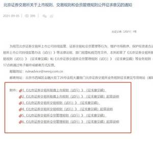 北京证券交易所就上市规则、交易规则和会员管理规则公开征求意见