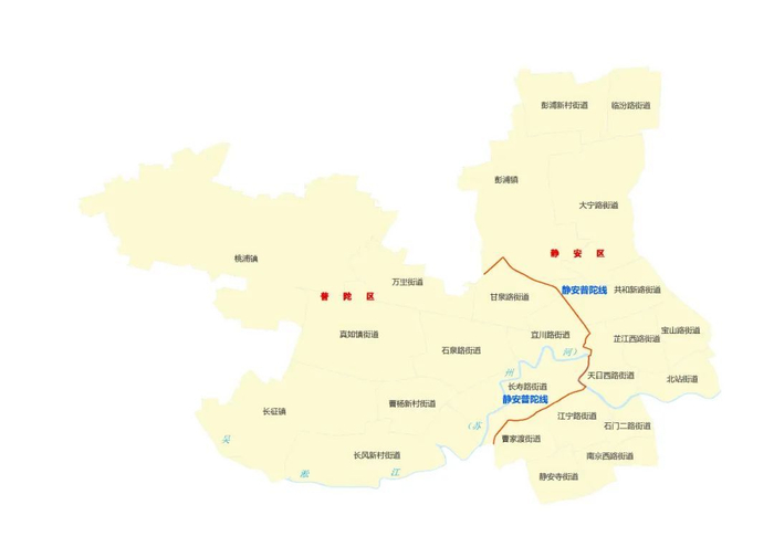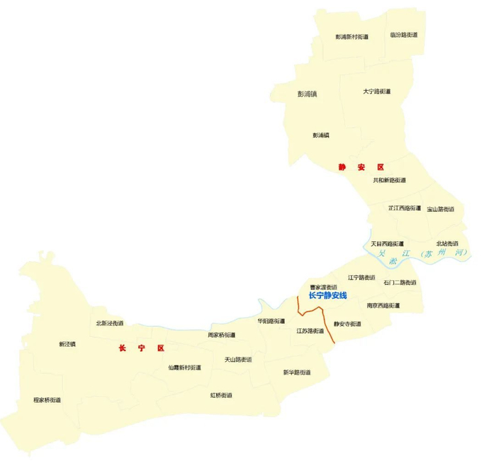 沿线涉及长宁区的华阳路街道、江苏路街道和静安区的曹家渡街道、静安寺街道。