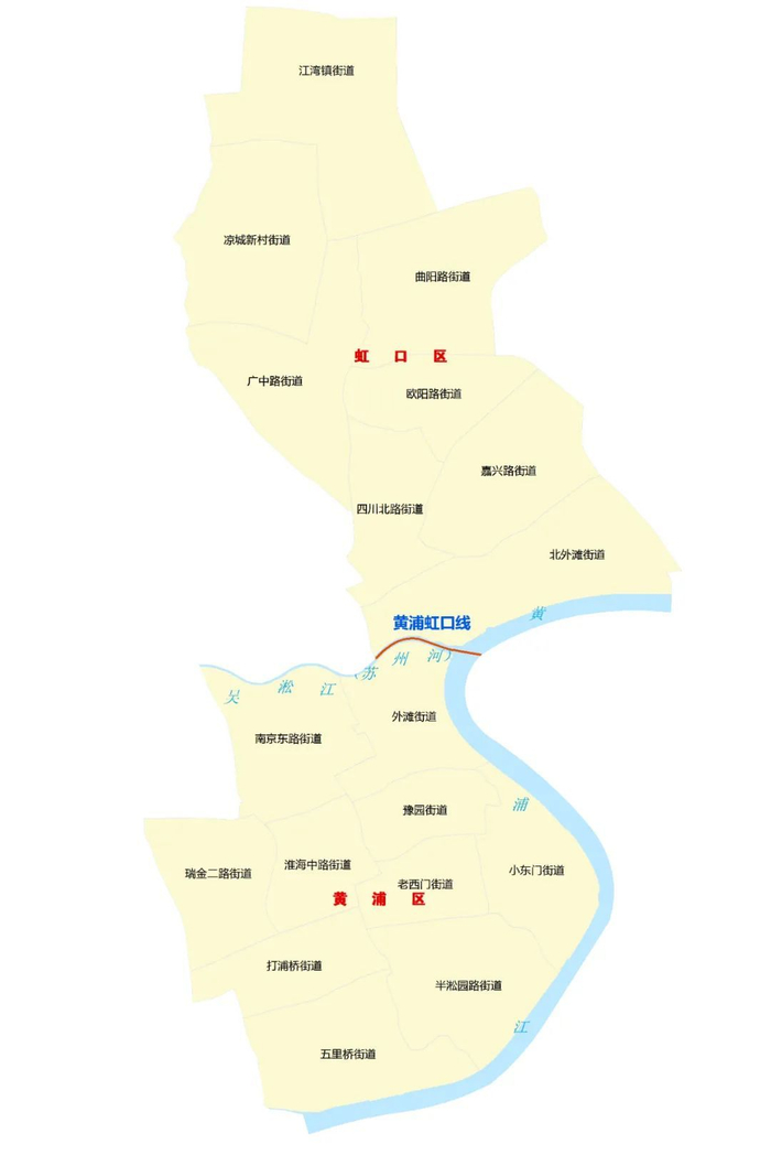 沿线涉及黄浦区的外滩街道和虹口区的北外滩街道。