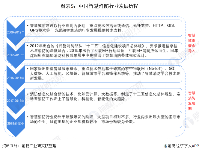 产业发展历程:主要经历了智慧城市概念导入和智慧消防发展两个阶段