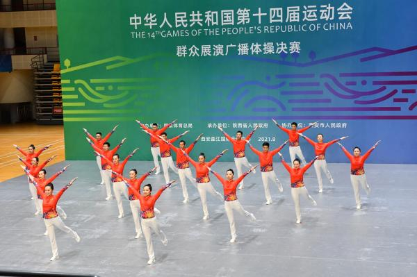 广播体操首次被纳入全运会群众赛事项目,以线上展演、线下评审的方式进行。每个代表队将广播体操视频录制好后,上传给组委会,由组委会的裁判进行打分。参赛视频除了要求清晰度以外,还要求视频的完整性和流畅性,不得有后期制作。