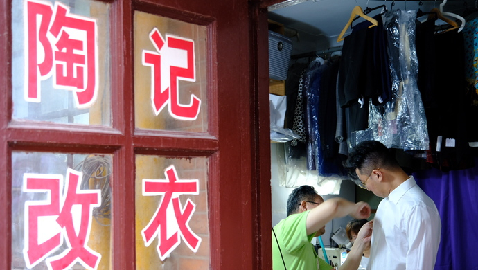 那段时间,小区里到处悬挂着“制止违法转租改建”“依法取缔无证无照经营”的横幅,陶培青等人为此忐忑不已。好在,因为改衣店扰民程度不高,兼有家庭作坊般的便民服务功能,最终被保留下来。
