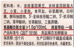 三看氨基酸态氮含量和质量等级标注。国家标准GB /T18186-2000规定,酿造酱油必须标注“氨基酸态氮”含量。特级酱油中氨基酸态氮含量为不低于0.8g/100ml(以氮计),三级酿造酱油中氨基酸态氮含量不低于0.4 g/100ml(以氮计)。因此,我们可以将氨基酸态氮含量和质量等级等信息作为选购酿造酱油的重要依据。(供稿:黑龙江省市场监管局)