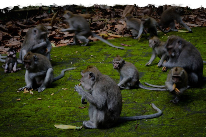 这群闹事的灰色长尾猕猴来自巴厘岛著名的桑格猴林保护区(Sangeh Monkey Forest)。