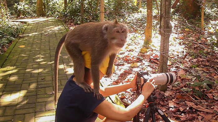 村民萨斯卡拉·古斯图·阿利特(Saskara Gustu Alit)一次去保护区附近的寺庙参拜,停好车,拿出装有鲜花和食物的袋子时,2只猴子就在他眼前把袋子偷走。