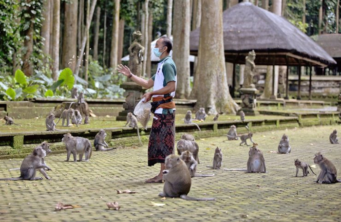 根据美联社、《洛杉矶时报》等消息,新冠疫情延续,度假胜地巴厘岛陷入寂静,岛上早已习惯被游客喂食的猴子们失去了大部分食物供给,开始闯入村民家里,抢夺食物。为了避免事态近一步恶化,当地村民开始带着花生、水果安抚挨饿的猴群。