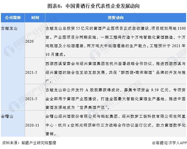 黄酒行业代表性企业最新投资动向