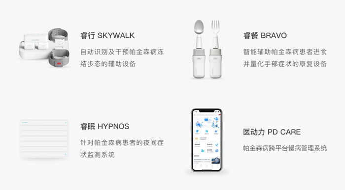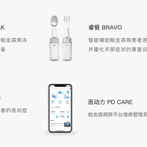 在创新治疗方面,臻络科学针对院外场景,开发出了全球第一款能够自动识别帕金森病冻结步态并进行实时干预的步态辅助设备“睿行”、国内第一款智能辅助帕金森病患者进食并量化手部症状的康复设备“睿餐”、专业针对帕金森病患者的夜间运动症状及睡眠质量评价系统“睿眠”以及帕金森病慢病管理APP平台“医动力”,并基于多年沉淀的完整闭环技术体系探索针对帕金森病的数字疗法。