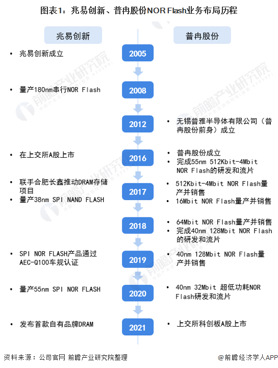 1、兆易创新VS普冉股份:NOR Flash业务布局历程