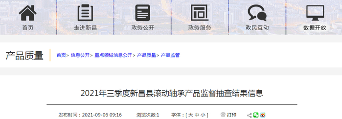 中国质量新闻网讯 2021年9月6日,浙江新昌县人民政府网站发布2021年三季度新昌县滚动轴承产品监督抽查结果信息。