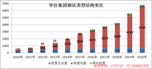 在经营模式上,华住当前以管理加盟(公司派驻酒店经理)及特许经营为主、以自营(自有物业)及租赁模式(租赁物业)为辅,以此来实现规模、质量和回报的平衡。