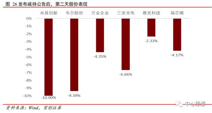 近期大基金一期频繁发布减持公告,拟减持万业企业、雅克科技、三安光电部分股份。另外,个别公司的创始人近期也发布减持公告。减持是资本市场正常行为,但市场理解需要时间,短期对市场情绪有影响。随着股市逐渐成熟、扩容,减持与增持一样,长期看将成为常态。