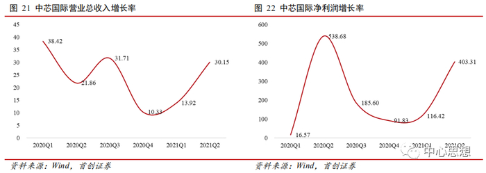 另一方面反映的是龙头台积电也有业绩的压力,自2020年以来台积电营业总收入同比增速由2020Q1的99.68%一路下跌至2020Q2的11.07%,利润收入同比增幅也在放缓,从2020Q1的42.02放缓至2021Q2的19.78%。