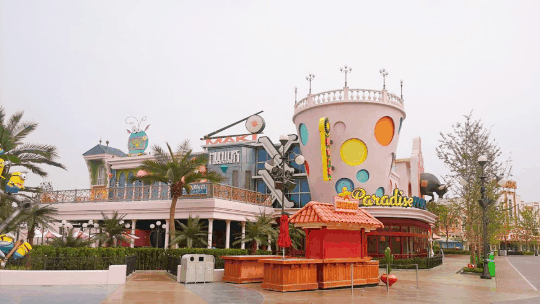 园区中的巨型粉红“奶昔杯”十分吸睛,高度还原了《神偷奶爸》中的主人公生活场景。“奶昔杯”是如何被搬出电影屏幕的?
