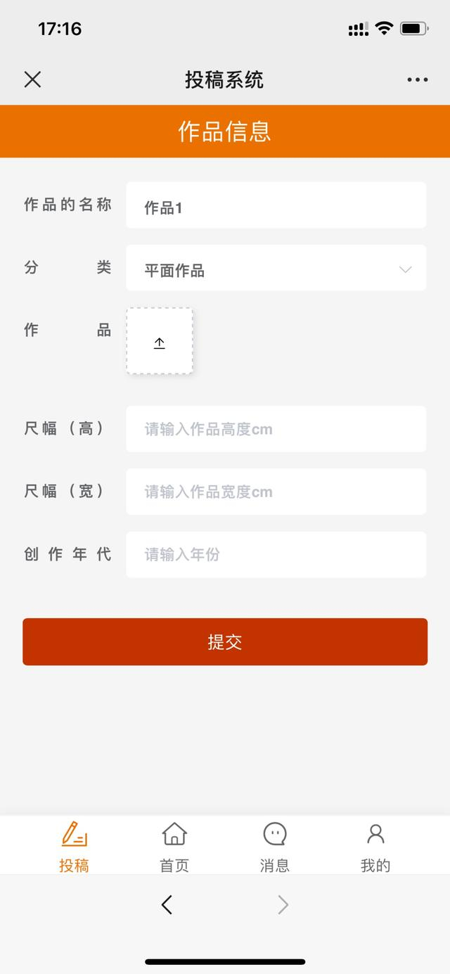 选择作品投稿类别,填写作品信息