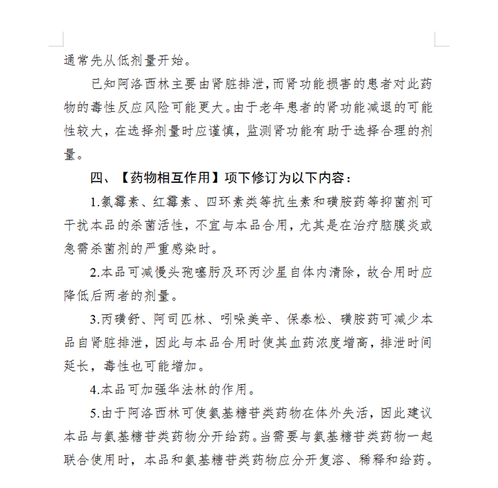 注射用阿洛西林钠修订说明书