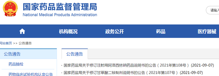 9月7日,国家药监局发布了两则药品修订说明书的公告,其中注射用阿洛西林钠和甘草酸二铵制剂的说明书有新的修订要求。