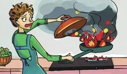 迅速将切好的冷菜沿边倒入锅内,火就自动熄灭了。另一种方法是用锅盖或能遮住油锅的大块湿布遮盖到起火的油锅上,使燃烧的油火接触不到空气。