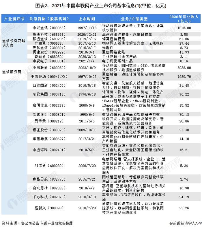 【最全】2021年中国车联网行业上市公司全方位对比(附业务布局汇总、业绩对比、业务规划等)