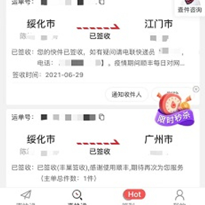 陈女士告诉记者,6月25日下午,她收到“顺丰速运”公众号推送的通知,提示由她寄出的一份快件已被签收。随后,类似的通知接踵而至,没多少时间,又多了300多条。这些快递全部由黑龙江省绥化市寄往全国各地。