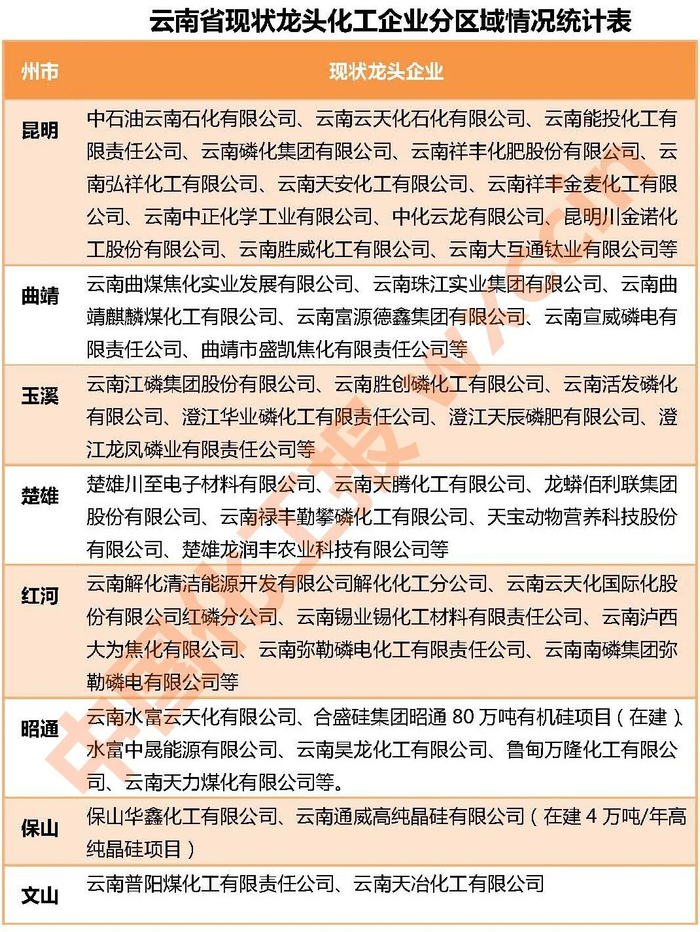 云南:到2025年化工行业实现总产值3000亿元(附 龙头化企名单)