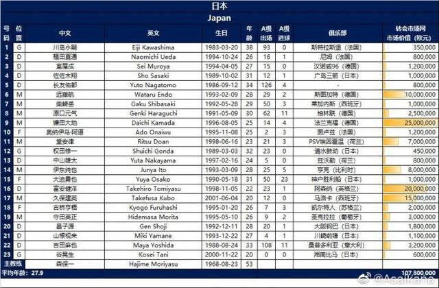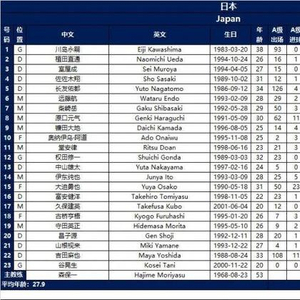 这份大名单其实前天就已由日本队官方公布: