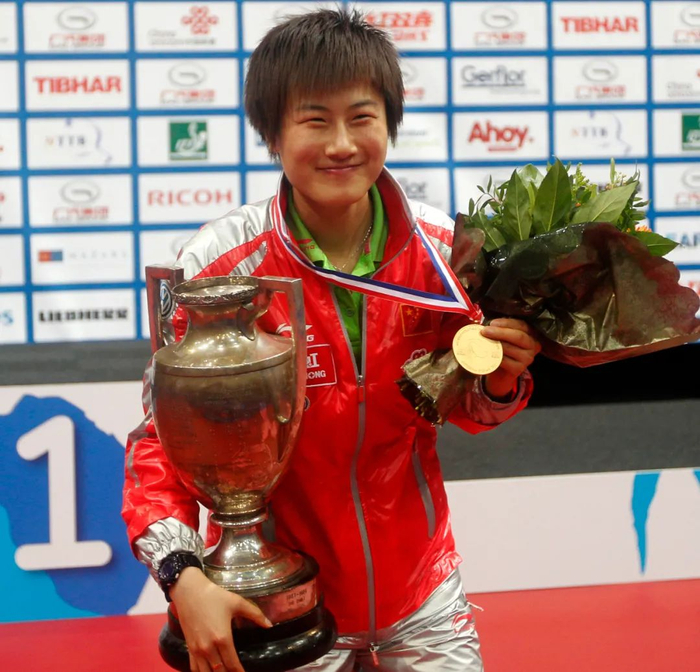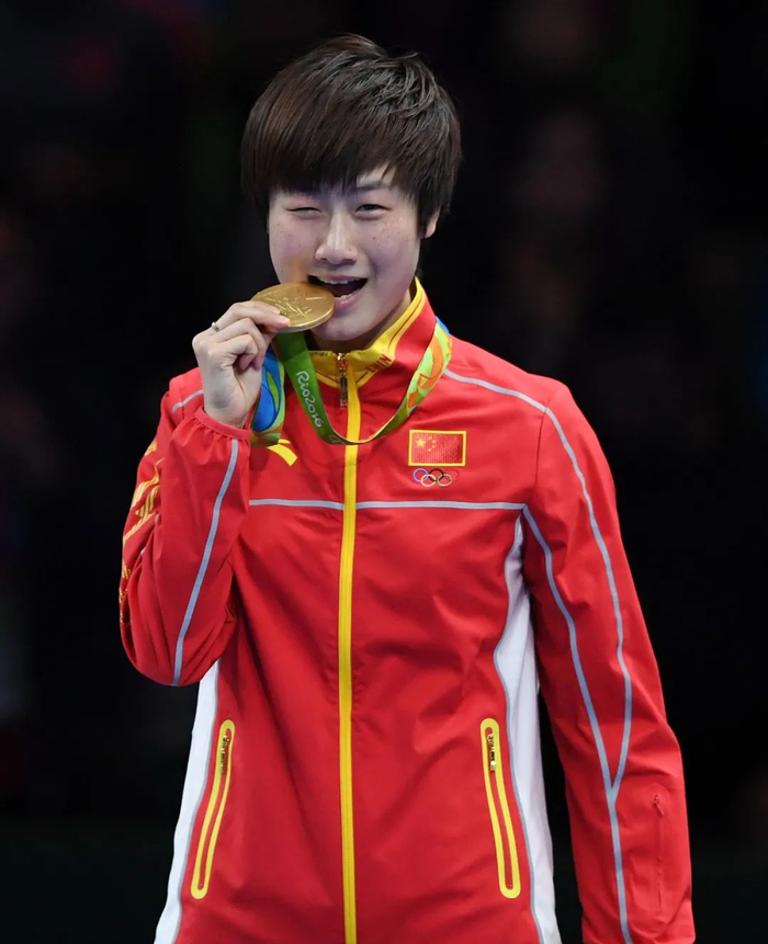 2016年里约奥运会,她如愿站上了最高领奖台,成为继邓亚萍、王楠、张怡宁、李晓霞之后,女乒第五位大满贯得主。