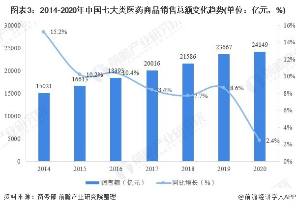 2020年,全国药品流通市场销售规模稳步扩大,但增速放缓。统计显示,全国七大类医药商品销售总额24149亿元,扣除不可比因素同比增长2.4%,增速同比放慢6.2个百分点。