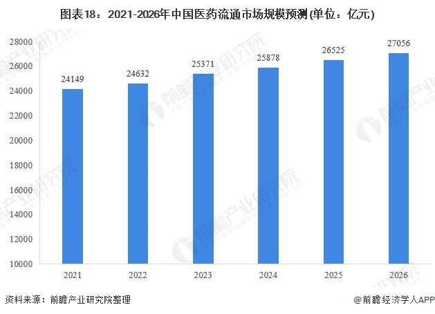 结合我国医药流通市场发展前景来看,我国医药流通行业仍将保持低速增长态势,到2026年,全国医药流通市场规模将达到27056亿元。
