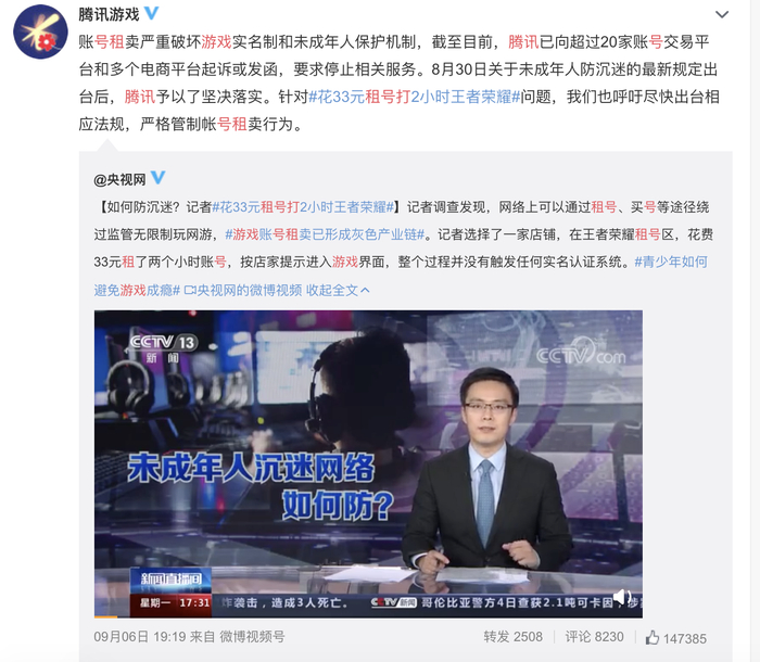 原标题:记者亲测未成年游戏账号租售 央视曝光腾讯拦截后灰产仍不休