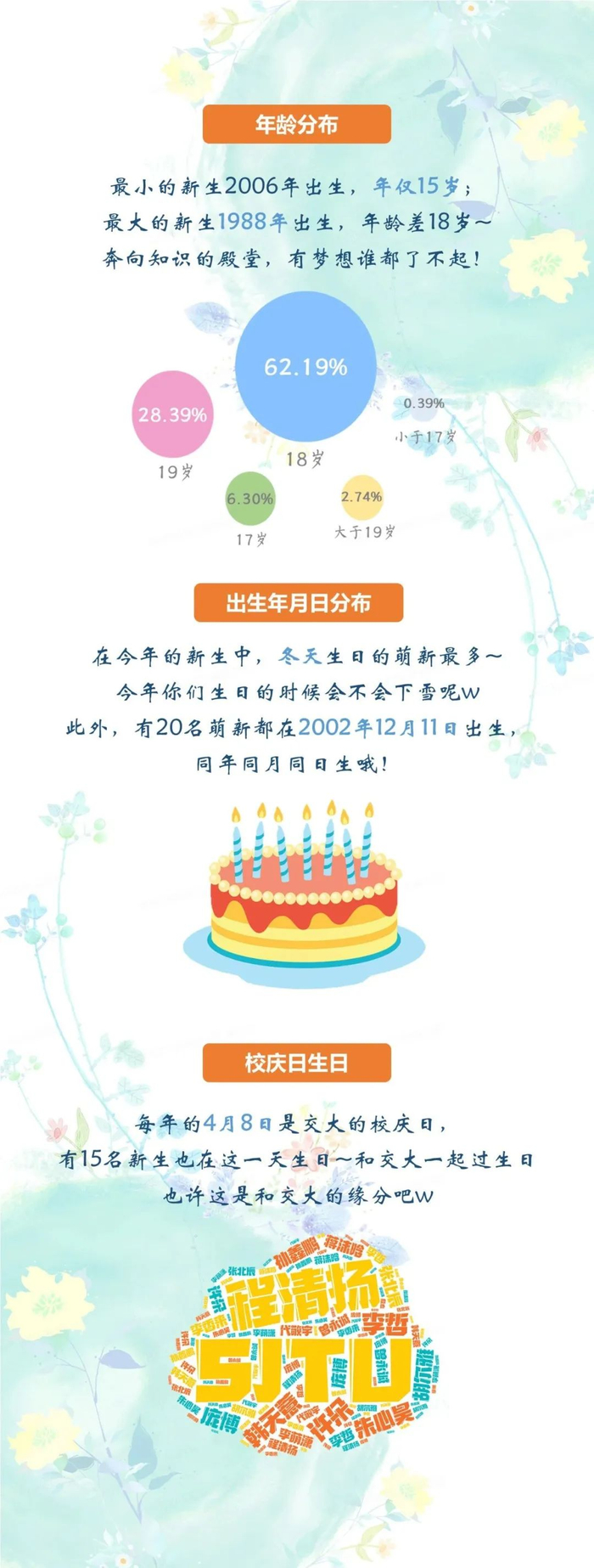 2021级本科新生有没有同母校一起过生日的?哪些新生带有自己学校的名字?上海交通大学、华东师范大学、上海科技大学3所院校发布本科新生大数据,一起来看看↓
