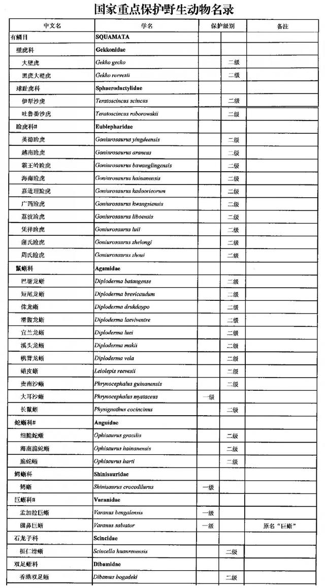中国国家重点保护动物--有鳞目蜥蜴亚目