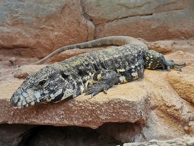 黑白泰加蜥分布于南美洲,成年个体全长可达1米,为肉食性蜥蜴,以昆虫、小型哺乳动物等为食。受CITES附录II保护。