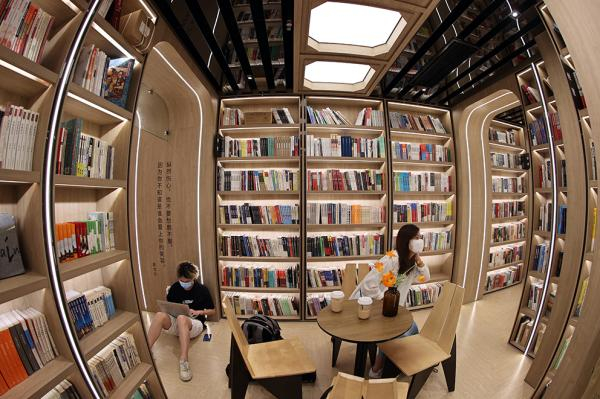 2021年9月7日,读者在钟书阁书店看书。近日,“最美书店”钟书阁上海松江万达店正式开业。钟书阁上海松江万达店溯“广富林文化”之源,整合阅读空间,为读者打造了一处全新的精神驿站。