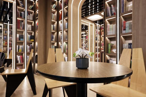 走进书店深处,还有一处咖啡吧,精致有趣的文创产品展陈于书海之间,休憩的圆桌和座椅随处可见,读者可以取一本好书、品一杯香浓的咖啡,坐下来享受身体和精神的双重愉悦。