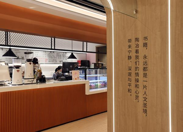 新店位于广富林路697号,木质的装潢、茶色的背景墙、层叠林立的书架,处处透着质朴宁静的味道。