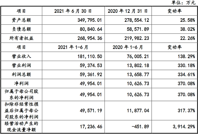 此外,腾远钴业还披露了2021年1-6月主要财务数据及经营状况,营业收入为18.11亿元,较上年同期增长138.29%;净利润为5.00亿元,较上年同期增长370.08%。