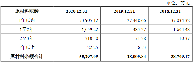 腾远钴业表示,截至2018年年末、2019年年末和2020年年末,除原材料之外,公司存货的库龄均在一年以内。报告期内原材料的库龄超过1年的原材料金额较小,占原材料总额的比例分别为4.33%、2.00%及2.52%,基本都为包装材料、五金备品备件等低值易耗品,尤其是刚果腾远须从国内采购此类原材料,故进行了适当的备货。