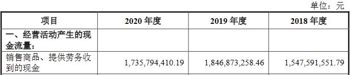 2014年至2020年,腾远钴业经营活动产生的现金流量净额分别为5326.07万元、1745.81万元、-9715.71万元、796.45万元、74.34万元、3.81亿元、-4872.78万元,净现比分别为200.75%、304.47%、-192.82%、1.88%、0.40%、345.06%和-9.50%;销售商品、提供劳务收到的现金分别为7.24亿元、6.05亿元、5.93亿元、13.90亿元、15.48亿元、18.47亿元和17.36亿元,主营业务收现比率分别为102.69%、107.19%、95.29%、83.30%、99.74%、110.78%和99.66%。
